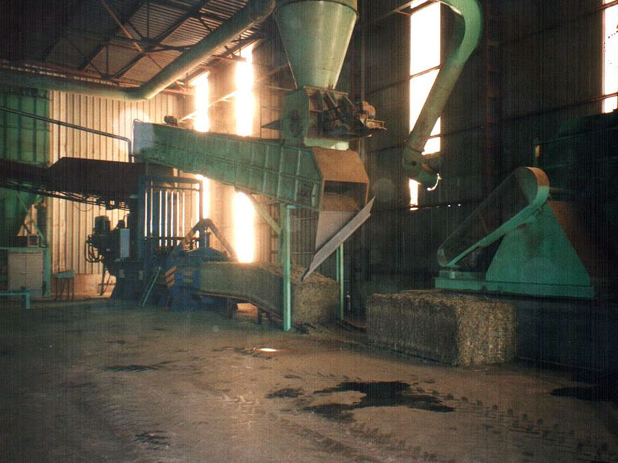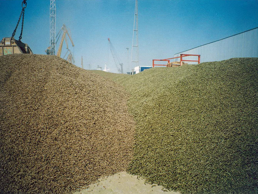 Con el mismo sistema de industrialización que la alfalfa en pacas, tras su deshidratación mecánicamente, es molida y comprimida en pellets de 5-6 o 7 mm de diámetro.
